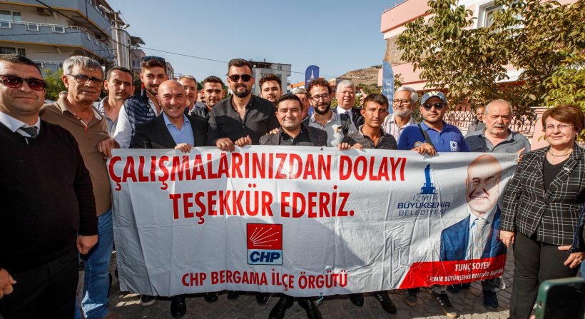 Bergama’ya değer katacak, koruyacak, güçlendirecek çok önemli altyapı yatırımlarının temelini hep birlikte attıklarını söyleyen Başkan Tunç Soyer, “Dört buçuk yıllık görev sürem boyunca sizlerin taleplerini kılavuz edindik. Sizlerin belediyemizden en büyük beklentisi altyapı sorunlarının çözülmesiydi. Biz bu sorunları ayrıntılı bir şekilde mercek altına aldık ve altyapı yatırımlarımıza önceliği verdik. Bu kararlılıkla, İzmir’in gelmiş geçmiş en büyük altyapı seferberliğini başlattık. Bu önceliğimiz ile İzmir’in günümüze kadar bekletilmiş tüm altyapı sorunlarını teker teker çözdük. Çözmeye devam ediyoruz. Çünkü bizim tüm İzmirlilere insan onuruna yakışır bir yaşam sözümüz var” diye konuştu.