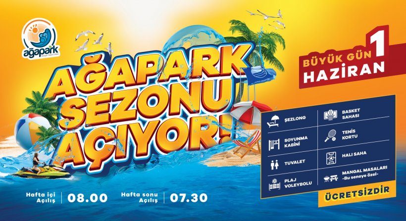 Mavi bayraklı plajı, 850 metre uzunluğundaki kumsalı, prestijli restoran ve kafelerinin yanı sıra spor ve sosyal donatı alanlarıyla Kuzey İzmir'in en gözde tatil rotaları arasında bulunan Ağapark'ta tatil sezonu 1 Haziran'da açılıyor.