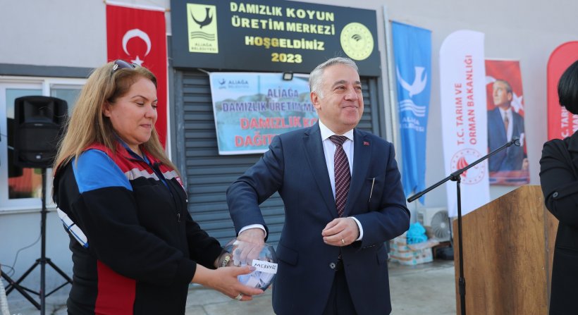 Küçükbaş hayvan üretiminin artırılması ve üreticilerin ekonomik olarak desteklenmesi amacıyla Aliağa Belediyesi ile İzmir İl Tarım ve Orman Müdürlüğü iş birliğinde Çoraklar Mahallesi’nde projelendirilen ‘Damızlık Koyun Üretim Merkezi’nde ilk koç dağıtımı gerçekleştirildi.