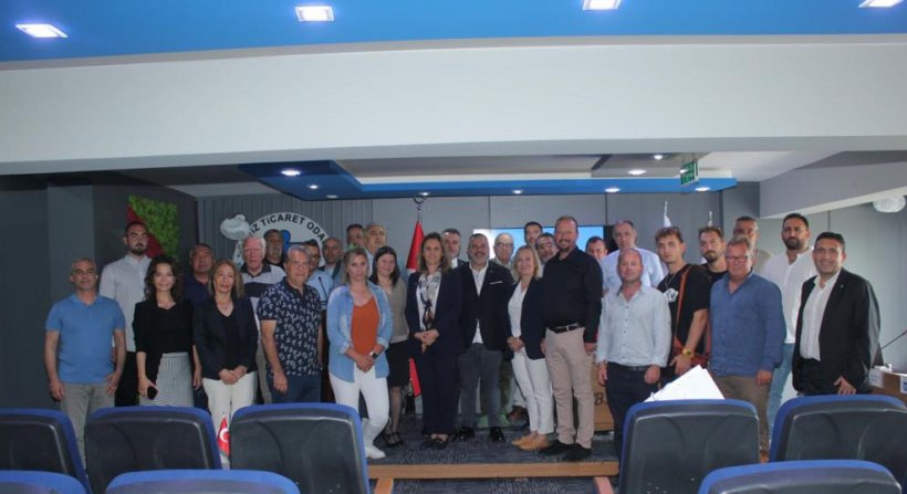 Toplantı sonrası Türkiye Yelken Federasyonu Başkanı Özlem Akdurak, İMEAK Deniz Ticaret Odası Aliağa Şubesi Yönetim Kurulu Başkanı Adem Şimşek’e günün anısına hediye takdiminde bulundu.
