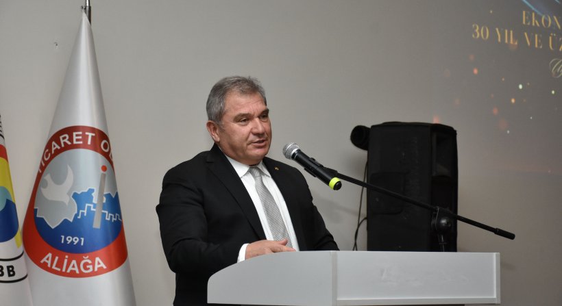 1960’lı yıllarda 3 bin kişilik nüfusuyla küçük bir balıkçı ve tarım kasabası olan Aliağa’nın 1982 yılında ilçe olduğunu ve ağır sanayi hamleleriyle birlikte bugün dev bir sanayi kentine dönüştüğünü dile getiren Başkan Ertürk, “Bugün Aliağamız, Türkiye Cumhuriyetimizin üretimde ve ticarette bir yıldızı konumuna gelmiştir. Limanlarımız toplam elleçlemede 1., konteyner elleçlemede 3., Türkiye’nin tek gemi geri dönüşüm bölgesine sahip, ülkedeki demir çelik üretiminin yüzde 27’sine, ve ülkemizin işlenmiş petrol ürünleri ihtiyacının yaklaşık yüzde 50’sine hükmediyor. O zaman neden ilçemizdeki işletmeler, iş yaşamlarında 50., 100. yıllara hükmetmesinler” diye konuştu.