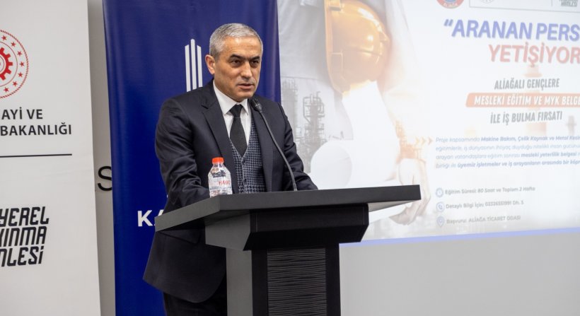 Aliağa’nın İzmir ve Türkiye için ne kadar önemli bir sanayi bölgesi olduğundan hareketle İzmir Kalkınma Ajansı olarak son dönemde yaptığımız çalışmalarla bölgeye çok önem verdiklerini söyleyen İZKA Genel Sekreteri Dr. Mehmet Yavuz, “Bugün güzel bir projenin başlangıcında birlikte yer alıyoruz. Aliağa yalnızca Ege Bölgesi için değil tüm Türkiye için çalışan, üreten çok önemli bir sanayi bölgesi. ‘Aranan Personel Yetişiyor’ mesleki eğitim projesi de Aliağa ve bölgesi için yaptığımız çalışmalar kapsamında kıymetli bir adım. Özellikle Aliağa’da yaşayıp şu an iş sahibi olmayan gençlerimize yönelik uygulanacak kurslarla ve ardından belgelendirerek meslek edinmelerini sağlayacağız. Özellikle bu projeye istihdam anlamında destek veren firmalarımızın katkıları çok önemli. Eğitimlerin neticesinde, kursiyerlerin istihdam ile buluşturulmasını sağlamaya yönelik bu girişimi çok kıymetli buluyoruz. Biz Aliağa özelinde bilgi tabanı oluşturmaya, sizlere katkı vermeye devam edeceğiz. Her zaman birlikte çalışmaya hazırız” dedi.