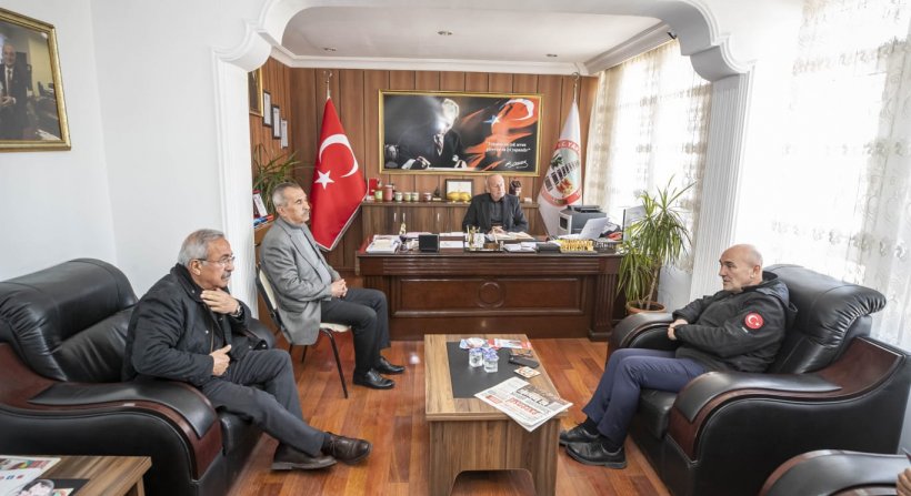Başkan Soyer son olarak Cevdetiye Belediye Başkanı Mehmet Özer’i makamında ziyaret etti ve bölge hakkında bilgi aldı.