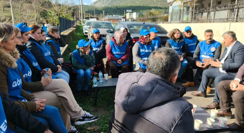 Grev alanında üyelerimiz ve şube yönetimi ile yapılan görüşmede Petrol-İş Sendikası’nın bütün örgütüyle grevin yanında olduğu ve mücadelenin sonuna kadar sürdürüleceği mesajı verildi. Genel Sekreterimiz Ahmet Baranlı ve Genel Örgütlenme ve Eğitim Sekreterimiz Niyazi Recepkethüda da yaptıkları konuşmalarda işverenin, çalışanlarının iradesine saygı göstermesini ve bir an önce toplu pazarlık masasının kurulması gerektiğini belirttiler.