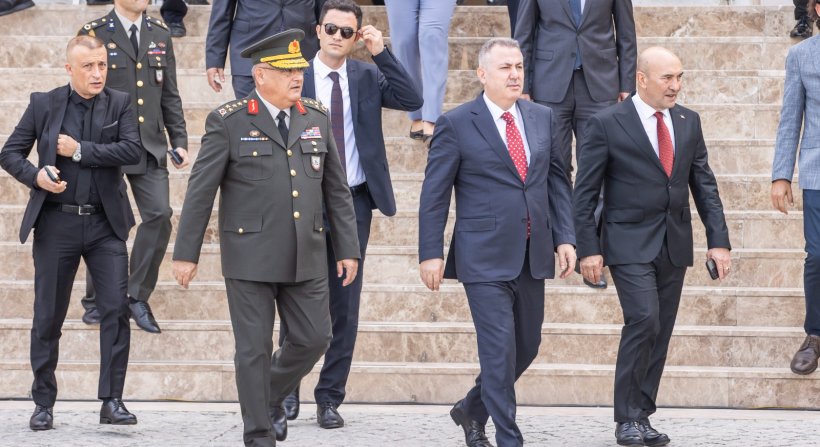 9 Eylül törenleri kapsamında Konak Atatürk Meydanı'nda düzenlenen bayrak törenine İzmir Valisi Süleyman Elban, Ege Ordusu ve Garnizon Komutanı Orgeneral Kemal Yeni, İzmir Büyükşehir Belediye Başkanı Tunç Soyer, milletvekilleri, muhtarlar, siyasi partilerin, kamu kuruluşları, üniversiteler ve sivil toplum örgütlerinin temsilcileri katıldı.