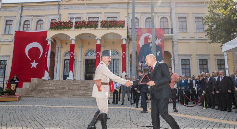 Konak Atatürk Meydanı’na gelen süvari birlikleri, kentin kurtuluşunu simgeleyen tarihi sahneyi bir kez daha canlandırarak, İzmirlilerin alkışları arasında Türk Bayrağı’nı Hükümet Konağı’nın gönderine çekti. İzmir Büyükşehir Belediye Başkanı Tunç Soyer ise törenin ardından Yüzbaşı Şerafettin’i temsil eden Süvari Birlikleri Komutanı’na teşekkür plaketi sundu.