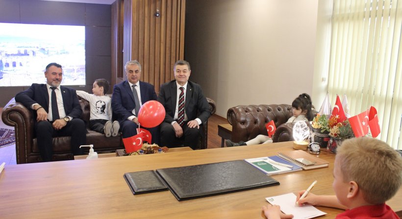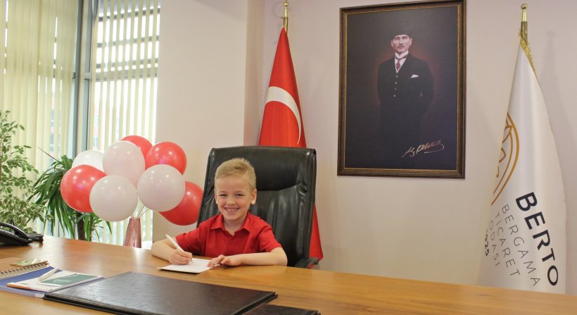 Bergama Ticaret Odası'nda, 23 Nisan Ulusal Egemenlik ve Çocuk Bayramı'na özel olarak koltuklar çocuklara devredildi.
