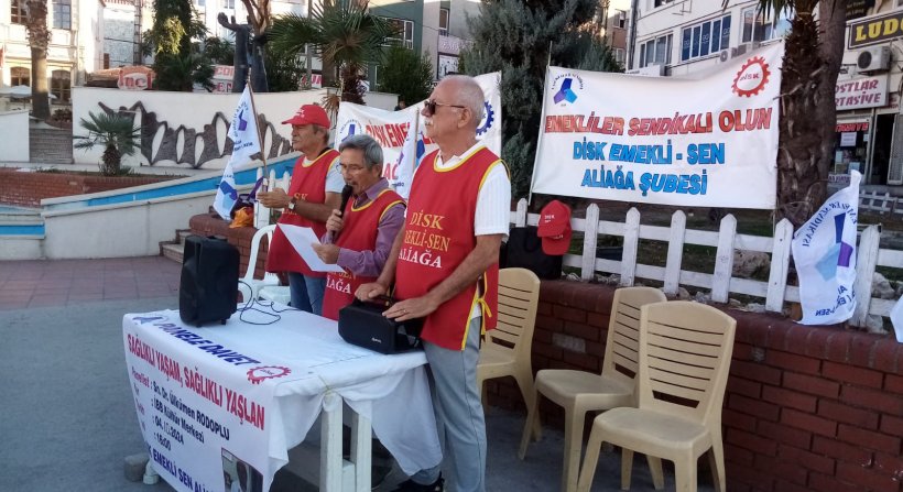 Gerçekleşen açıklamaya Emekli-Sen Üyeleri ile CHP İlçe Yönetimi ve Belediye Meclis Üyeleri katılırken Aliağa Aleviler Derneği de alanda yerini aldı. Yapılan eylemde okunan basın bildirisi şu cümlelerden oluştu: