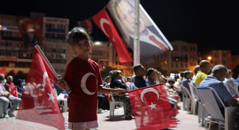 Aliağa Kabristanlığı’nda şehitlik ziyareti ve Çarşı Caminde mevlid okutulmasıyla başlayan anma programı, akşam saatlerinde Demokrasi Meydanı’nda gerçekleştirilen geniş katılımlı etkinliklerle devam etti.