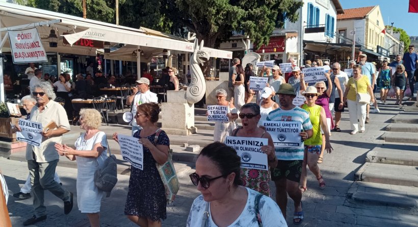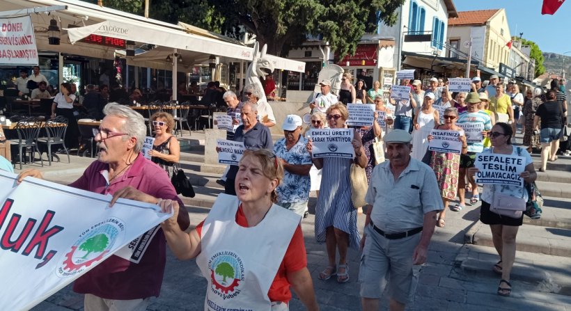 İzmir'in Foça İlçesi'nde Emekliler maaşları ve maaş zamlarını protesto için eylem yaptılar