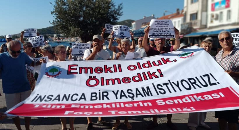 İzmir’in Foça İlçesi’nde Emekliler maaşları ve maaş zamlarını protesto için eylem yaptılar.