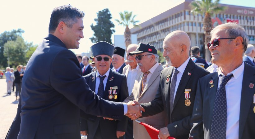 Saygı duruşunda bulunulması ve İstiklal Marşı’nın okunmasının ardından günün anlam ve önemini belirten konuşmayı Kıbrıs Gazisi İslam Doğan Kılıç yaptı. Kılıç konuşmasında şunları söyledi: “Tarihin her döneminde, bağımsızlığını ve istikbalini canı pahasına kollayan aziz milletimiz, bu uğurda şehit ve gazi olmayı büyük bir onur ve gurur kaynağı saymıştır. Aziz milletimizin Anadolu toprakları üzerinde verdiği var oluş mücadelesinin şifresi, ölürseniz şehit, kalırsanız gazi şeklindedir. Şanlı ve şerefli Türk Ordusu, dün olduğu gibi bugün de yarın da vatanımızın bütünlüğünün sigortasıdır. Hiç düşünmeden, geriye bakmadan, vatan, millet ve bayrak için emperyalist güçlerin topyekün saldırılarına karşı mücadele ederek bize bu cennet vatanı emanet eden şehitlerimizi, Gazi Mustafa Kemal Atatürk ve silah arkadaşlarını, ebediyete intikal eden tüm gazi arkadaşlarımızı gaziler günü münasebetiyle rahmetle anıyor, hayatta olan gazilerimize sağlık ve mutluluklar diliyorum. Savaş meydanlarında canlarını ortaya koyan, kahraman gazilerimizin şeref ve kahramanlık günüdür bugün. Gaziler günümüz kutlu olsun”