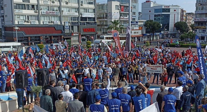 Sadece ülkemizde değil dünyadaki tüm emekçiler gibi bugün, sömürü ve zulme karşı sesimizi burada, bir işçi kenti olan Aliağa’da yükseltiyoruz.