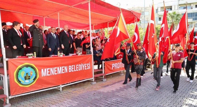 Türk ordusunun 26 Ağustos’ta başlattığı Büyük Taarruz neticesinde büyük bir özveriyle İzmir ve Menemen’i esaretten kurtardığı 9 Eylül 1922 tarihi, 102. yılında da gönüllerdeki saygı, minnet ve heyecanla yaşatılıyor. İzmir’in ve Menemen’in kurtuluşunun 102. yılı, Menemen’de gurur ve coşkuyla kutlandı. Menemen Cumhuriyet Meydanı’nda düzenlenen çelenk ve geçit töreninde, marşlar hep bir ağızdan söylenirken, ay yıldızlı bayraklar kurtuluşun sevinciyle sallandı. Törene Menemen Belediye Başkanı Aydın Pehlivan ile birlikte Menemen Kaymakamı Fatih Yılmaz'a vekalet eden Aliağa Kaymakamı Zekeriya Güney, Menemen Cumhuriyet Başsavcısı Hüseyin Kaçar, Garnizon Komutan Vekili Topçu Yarbay Serdar Moraç, siyasi partilerin başkan ve yöneticileri, kamu kurum ve kuruluşlarının yöneticileri, STK ve oda başkan ve yöneticileri, gaziler, okullar ve vatandaşlar katıldı.