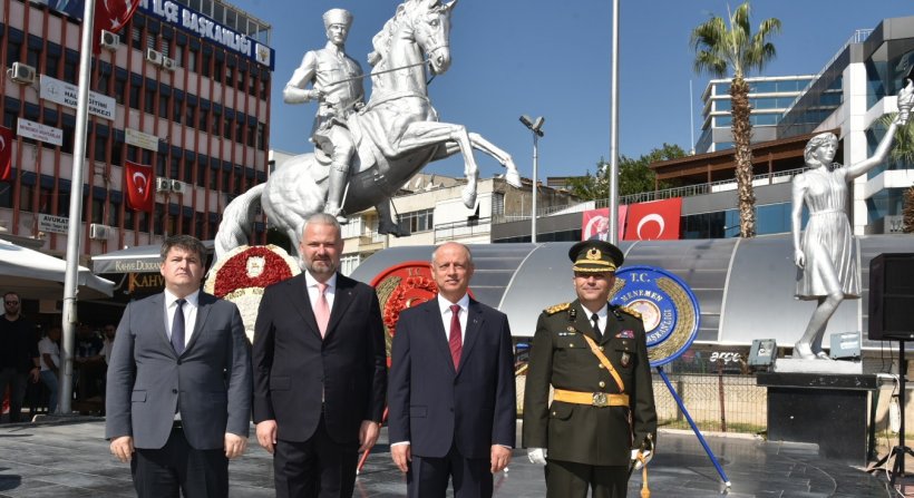 30 Ağustos Zafer Bayramı’nın 101. Yıldönümü, tüm yurtta olduğu gibi Menemen’de de törenlerle kutlandı. Büyük Zafer’in coşkusu sabah Cumhuriyet Meydanı’nda düzenlenen çelen koyma töreni ile başladı. Törene İzmir Vali Yardımcısı İsmail Çorumluoğlu, Garnizon Komutanı Topçu Albay Zekeriya Tosun, Menemen Belediye Başkan Vekili Aydın Pehlivan, Menemen Cumhuriyet Başsavcısı Hüseyin Kaçar, siyasi parti temsilcileri, kamu kurumları ve sivil toplum kuruluşları yöneticileri, gaziler, mahalle muhtarları, öğrenciler ve vatandaşlar katıldı.