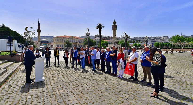 Bugün emperyalizme karşı tarihin en büyük direnişinin başladığı yerde bulunduklarına dikkat çeken İzmir Büyükşehir Belediyesi Başkan Vekili Mustafa Özuslu, “Tarih 1919. Mayıs’ın 15’iydi. İzmir’de bir kahraman Anadolu kurtuluş destanının ilk cümlesini söyledi: ‘Sen başlat, bitiren bulunur.’ Bu sözler kadını, yaşlısı, çocuğu, genciyle koca bir vatan için istiklal mücadelesinin kıvılcımını yaktı. Halkın beklediği o ilk ateşi yakan kahramanın adı Hasan Tahsin’di. Tam burada… İşgal ordularına ilk kurşun atıldı. O kurşun ümitsizliğe gömülmüş bir memleketin cesareti ve umudu oldu” diye konuştu.