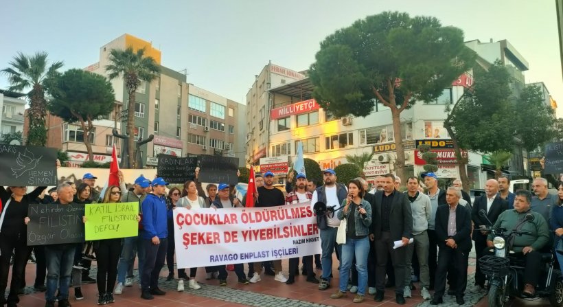 İsrail'in katliamcı politikalarına karşı, Türkiye’nin ve tüm dünyanın yaptırım uygulamasını istiyoruz. Tüm Aliağalı işçi ve emekçileri, Filistin halkı ile dayanışmaya çağırıyoruz.