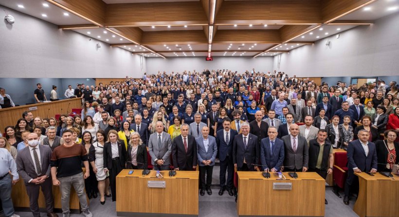 Başkan Tunç Soyer, “Görevimin dördüncü senesi dolarken emin olun ki bu kurumda çalışıyor olmaktan, sizlerle beraber olmaktan, böyle büyük bir sorumluluğu üstlenmekten çok gurur duyuyorum. Çünkü İzmir Büyükşehir Belediyesi'nin ürettiği hizmetlerin kalitesinin, yaptıklarının, çalışmalarının hakikaten çok farklı olduğunu görüyorum” diyerek sözlerine başladı.