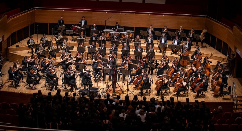 Sahnede Ahmed Adnan Saygun Senfoni Orkestrası var