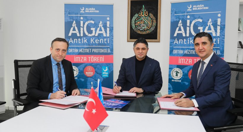Antik dönemde “Aiolis Bölgesi” olarak anılan İzmir’in kuzeyini kapsayan bölgenin önemli antik kentlerinden Aigai'de 2004 yılında başlayan arkeolojik kazılar 2020 yılından bu yana Aliağa Belediyesi tarafından destekleniyor. İmzalanan ortak hizmet protokolü ile Aliağa Belediyesi 2024 yılında da Aigai'deki arkeolojik kazılara sponsorluk desteğini sürdürecek.