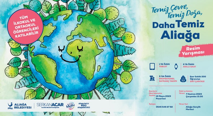 Öğrenciler arasında çevre bilincinin oluşturulmasını hedefleyen Aliağa Belediyesi, ilk ve ortaokullar arası ‘Temiz Çevre, Temiz Doğa, Daha Temiz Aliağa’ temalı resim yarışması düzenliyor.
