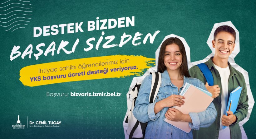 Yükseköğretim Kurumları Sınavı'na (YKS) girecek ihtiyaç sahibi 12. sınıf öğrencilerinin sınav ücretleri, İzmir Büyükşehir Belediyesi tarafından karşılanacak. Destekten yararlanacak öğrenciler için bugünden itibaren bizvariz.izmir.bel.tr sitesi üzerinden başvuruda bulunulabiliyor.