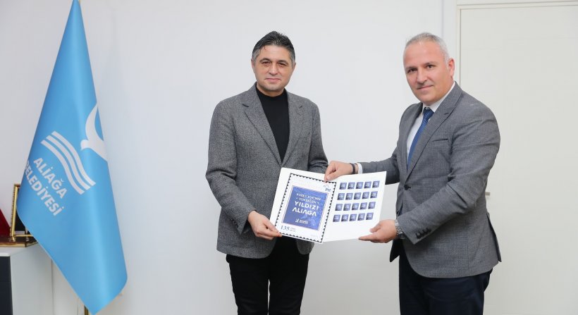 İzmir PTT Başmüdür Yardımcısı Özgür Babalı, Aliağa Belediye Başkanı Serkan Acar’ı makamında ziyaret ederek üzerinde “Kuzey Egenin Yükselen Yıldızı Aliağa” ibaresi ve Aliağa görüntüsünün yer aldığı pulları takdim etti. Yapılan ziyarette Aliağa Belediyesi Personel Şirketi Yönetim Kurulu Üyesi Mehmedali Özkurt, Aliağa PTT İlçe Müdürü Barış Taş, İzmir PTT Değerli Kâğıtlar Müdürü Hatice Tahta ve Aliağa Değerli Kâğıtlar Sorumlusu Serhan Öcalan da hazır bulundu.