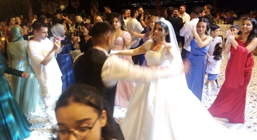 Güzel bir akşamda alanı dolduran misafirleri ile pistten inmeyen genç çiftin otururken çekilebilen bir fotoğrafları olmadı.