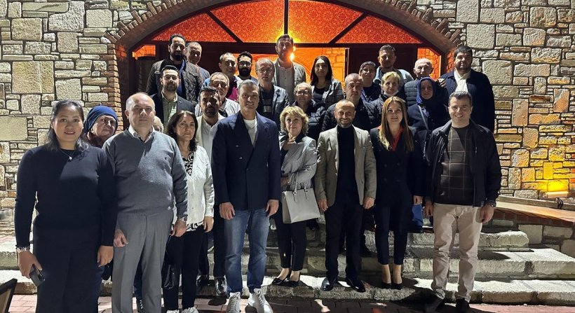 Aliağa'da taziye ziyaretinde bulunan Alpay Özalan daha sonra Aliağa Belediyesinin Güzelhisar 'daki Sosyal Tesislerinde partililerle bir araya geldi.
