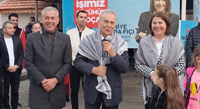 Aziz Kocaoğlu; “Bu seçimde gönüllü olarak, partime, kentime, ülkeme hizmet etmek için ziyaretlerde bulunuyorum. Teveccühle karşılanıyorum. Ekonominin durumunu hepiniz benden iyi biliyorsunuz. Emekliler son derece kötü durumda, sabit gelirliler, çiftçi ve hayvancılar kötü durumda. Şehri dolaşın, birçok işyeri kepenk indiriyor. 15 yıllık belediye başkanlığım döneminde bir karış gayrimenkul satmadım. Dünyanın malını aldım. Buradan İzmir’e ve Çanakkale’ye giderken iki tane ilçe var. Biri 10 senede diğeri 5 senede bütün mallarını sattılar. Dünyanın malını sattılar, başarılıyız diyorlar. Bu mallar kimin. Muhtarlık, belde dönemlerinden belediyeye geçen mallar. Milletin malı. Aliağa Belediyesi köyden devralınan 900 dönüm yer satıyor. Meclisten karar aldım. Kaç paraya satıyorsan İzmir Büyükşehir Belediyesi’ne alacağım dedim. Bu alan içinde 14 dönüm bir yer vardı. Orası satıldı. Şufa hakkı oraya geçti. Ben ihaleye bile giremedim. Mal satarak belediye başkanlığı yapılmaz. Hayırsız evlat gibi, atadan, anadan, babadan, dededen ne kaldıysa satıp, bitiriyorlar. Atalardan babalardan aldığımızı çocuklarımıza devredeceğiz. Üstüne bir şey koyabilirsek koyacağız. Koyamazsak en azından muhafaza edeceğiz.”
