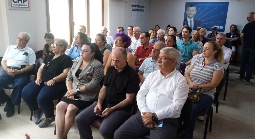 Cumhuriyet Halk Partisi Aliağa İlçe Başkanı Ali Serçe başkanlığında tüm Türkiye’de ilk ders zilinin çalması ile başlayan 2024-2025 eğitim yılı ile ilgili olarak CHP Milli Eğitim Bakanlığından sorumlu Genel Başkan Yardımcılığı tarafından hazırlanan ‘Eğitim Sisteminde Acilen Yapılması Gerekenler’ başlıklı basın açıklaması için toplandı.