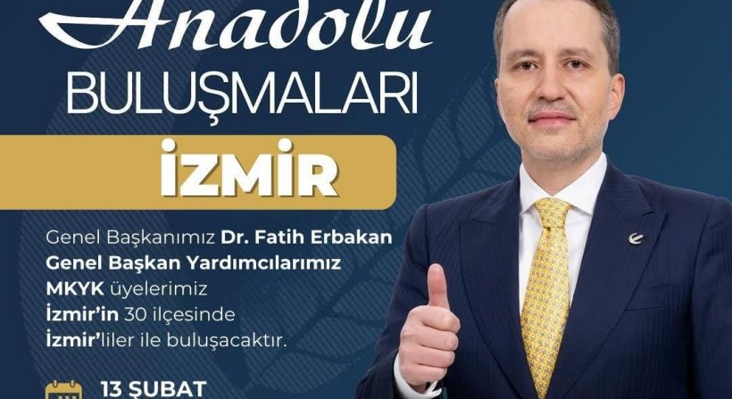 - "Yeniden Refah Partisi Genel Başkanı Dr. Fatih Erbakan Anadolu Buluşmaları Kapsamında 13 Şubat Perşembe günü İzmirlilerle buluşacak. .Erbakan'ın İzmir ziyaretine beraberinde Genel Başkan Yardımcıları ve MKYK Üyeleri de katılacak.