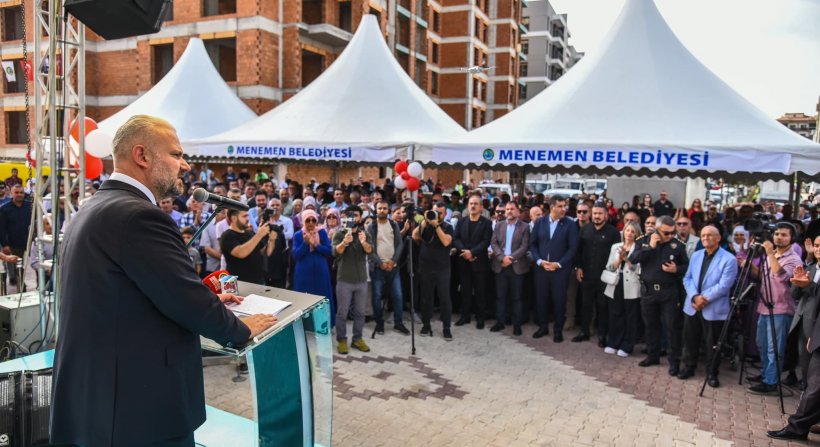 Menemen Belediyesi’nin, Koyundere’ye kazandırdığı kapalı pazar yeri, halı saha ve yeni nesil park düzenlenen törenle hizmete açıldı. Menemen’in her bir metrekaresi, her mahallesi gibi Koyundere’nin de yaşam kalitesini yükseltmek için gece gündüz demeden çalıştıklarını ifade eden Pehlivan, “Bu tesislerimizin yanı sıra bütün yollarını yenilediğimiz Koyundere’mize, taziye evi, gençlik merkezi ve bir anaokulu kazandırıyoruz. Buradan ilan ediyorum ki; Menemen’de yaşamak ayrıcalık olacak. Daha da fazlasını yapacağız çünkü Menemen, her şeyin en iyisine layık” dedi.