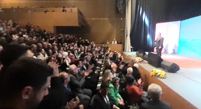 Bergama Belediye Kültür Merkezinde halka açık Projelerini anlatan Cumhur İttifakı Belediye başkan adayı Dr. Sadık Doğruer, iki bin kişinin katıldığı salonda alkış yağmuru eşliğinde sanatçı gibi karşılanarak sahne aldı.