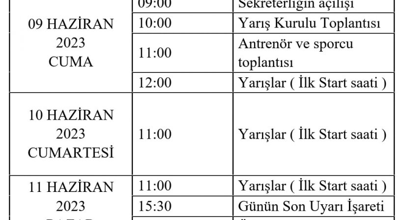 10 HAZİRAN 2023 CUMARTESİ 11:00 Yarışlar ( İlk Start saati )