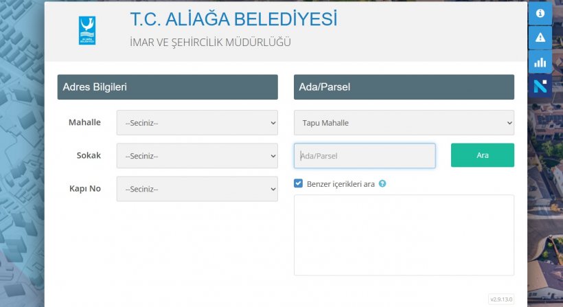 Vatandaşlar imar durumu sorgulaması yapmak için, Aliağa Belediyesi’nin resmi web sitesi https://www.aliaga.bel.tr/ ana sayfasında yer alan ‘E-İmar’ sekmesine girerek sorgulama ekranına ulaşacak. Vatandaşlar, açılan ekranda adres bilgilerini veya ada parsel bilgilerini girerek imar durumunu kolaylıklasorgulayabilecek ve plan notlarına erişebilecek. Ayrıca imar durumu çıktı ekranında; plana ilişkin bilgiler, plan sınıfı, yapılaşma bilgileri, kadastro bilgileri, ada parselin adres ve konum bilgisi yer alacak. Sorgulanan imar durumları sadece vatandaşların bilgi alması için olacak ve resmi işlerde kullanılamayacak. Vatandaşların resmi işlemler için ilgili müdürlüğe gelmeleri gerekecek.