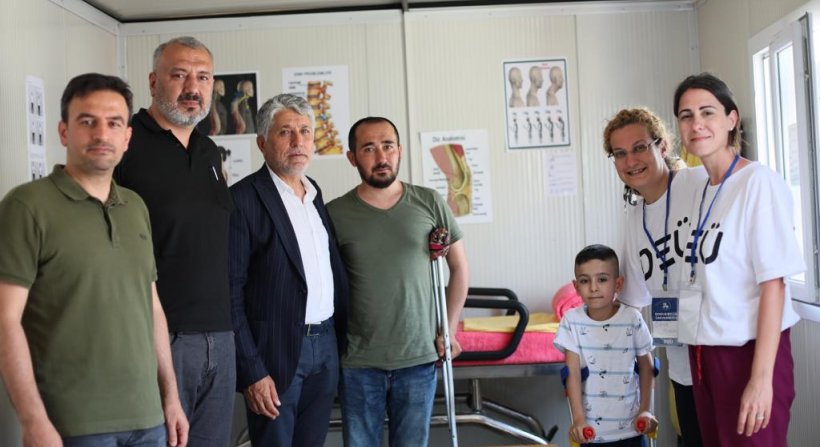 Konteyner kentlerdeki saha taramaları ile önemli sağlık verilerine ulaşıldığını kaydeden DEÜ Rektörü Hotar, “Üniversitemiz Fizik, Tedavi ve Rehabilitasyon Fakültesi’nden konularında uzman başarılı Fizyoterapi hocaları ve stajyer Fizyoterapistlerden oluşan ekiplerimiz, depremzedelerle yüz yüze görüşmeler gerçekleştirerek mevcut sağlık sorunları hakkında rapor hazırlıyor. Bölgeye giden sağlık ekiplerimiz de bu bilgiler ışığında vatandaşlarımızın tedavilerini gerçekleştiriyorlar. Üniversitemiz de Fizik Tedavi ve Rehabilitasyon tedavileri, egzersiz programlarının uygulanması, gerekli malzeme, cihaz ve ekipman temini noktasında paydaşları ve depremzedeler arasında koordinasyon sağlıyor. Tedavi ünitemizin hem konteyner kentte hem de bölgede önemli bir sağlık hizmeti açığını kapatacağına inanıyoruz” ifadelerini kullandı.