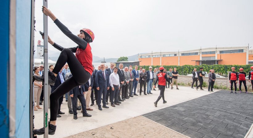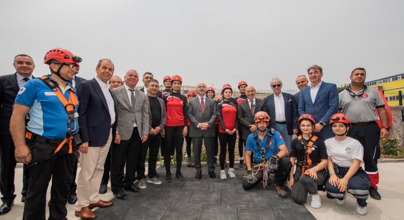 İzmir Büyükşehir Belediyesi itfaiye ekipleri, alanda tatbikat da yaptı. Ekipler, senaryo gereği bir araç yangınına müdahale etti.