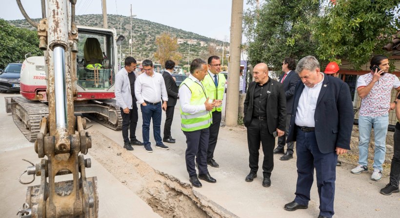 İzmir Büyükşehir Belediye Başkanı Tunç Soyer, İZSU ve İZBETON A.Ş. tarafından Çeşme’de yürütülen çalışmaları inceledi. Başkan Tunç Soyer’e Çeşme Belediye Başkanı Ekrem Oran, İZSU Genel Müdürü Ali Hıdır Köseoğlu, İZBETON A.Ş. Genel Müdürü Heval Savaş Kaya, İzmir Büyükşehir Belediyesi Genel Sekreter Yardımcısı Özgür Ozan Yılmaz ve Büyükşehir Belediyesi bürokratları eşlik etti.