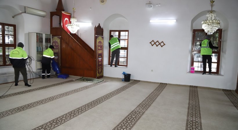 Belediye Temizlik İşleri Müdürlüğü bünyesinde yürütülen çalışmalar kapsamında tüm camilerde iç ve dış alanlar, şadırvanlar, abdesthaneler titizlikle temizlenerek ibadete hazır hale getirildi.